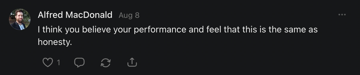 Morality as performance vs morality as "damnit I guess I'll do the right thing"